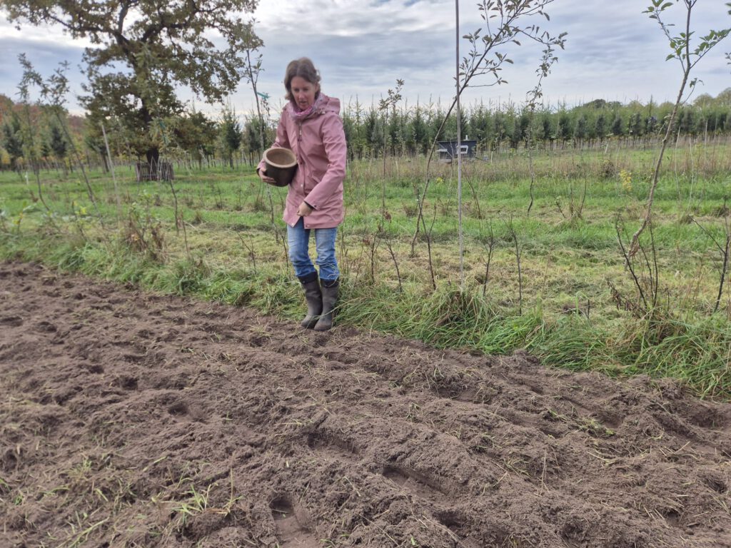 Bloemen en bloeiende kruiden hebben veel voordelen in een agroforestry systeem, zoals bestuiving, als voedselbron of waardplant. Daarnaast geven bloemen een positieve uitstraling aan het bedrijf en zorgen voor een verfraaiing van het landschap. Denk aan gewone margriet, wilde peen, wilde marjolein, boerenwormkruid. Maar bloemen kunnen daarnaast, via verkoop in boeketten of zelf-pluk, wellicht ook een bijdrage leveren aan het verdienvermogen van een bedrijf. Om meer te leren hierover heb ik begin november met Jade Koop op haar kwekerij Jade Reforestry een proefstrook van 200m2 tussen de rijen ingezaaid met drie verschillende meerjarige inheemse bloemenmengsels.